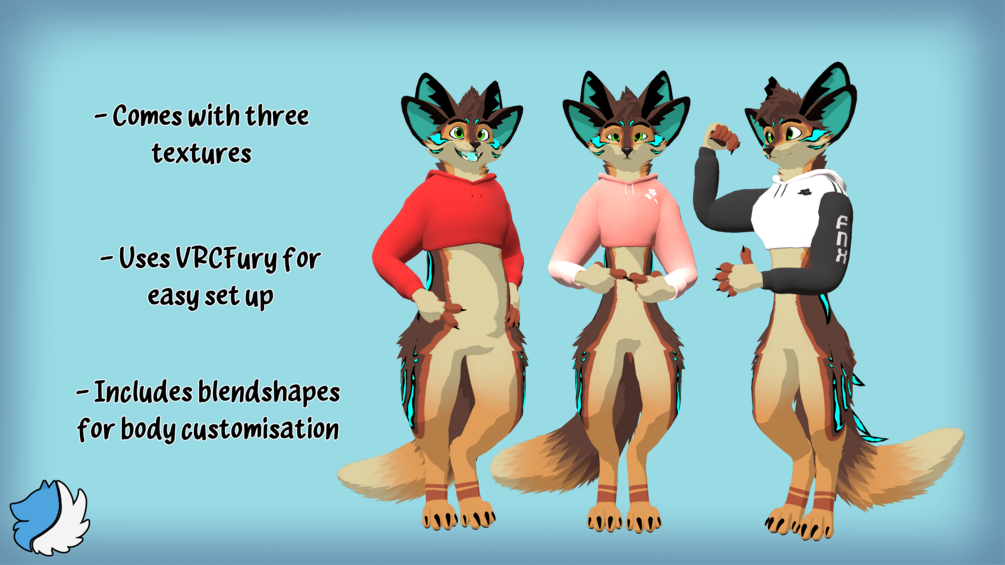 Base avatar pictured is used as an example and not included. Materials provided use the standard shader.